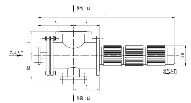 說明:DFH型輻射管換熱器為標準型,也可根據(jù)用戶提供的參數(shù)設計制造。