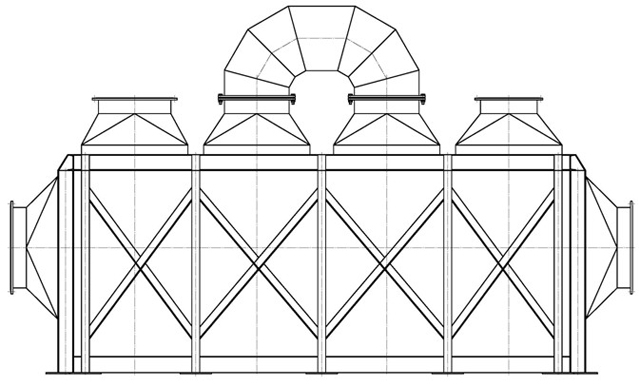 排煙溫度<750℃,空氣預(yù)熱至450℃,型式為光管插件式,熱組采用0Cr17或0Cr19Ni9不銹鋼管,冷組采用碳鋼滲鋁無縫管。